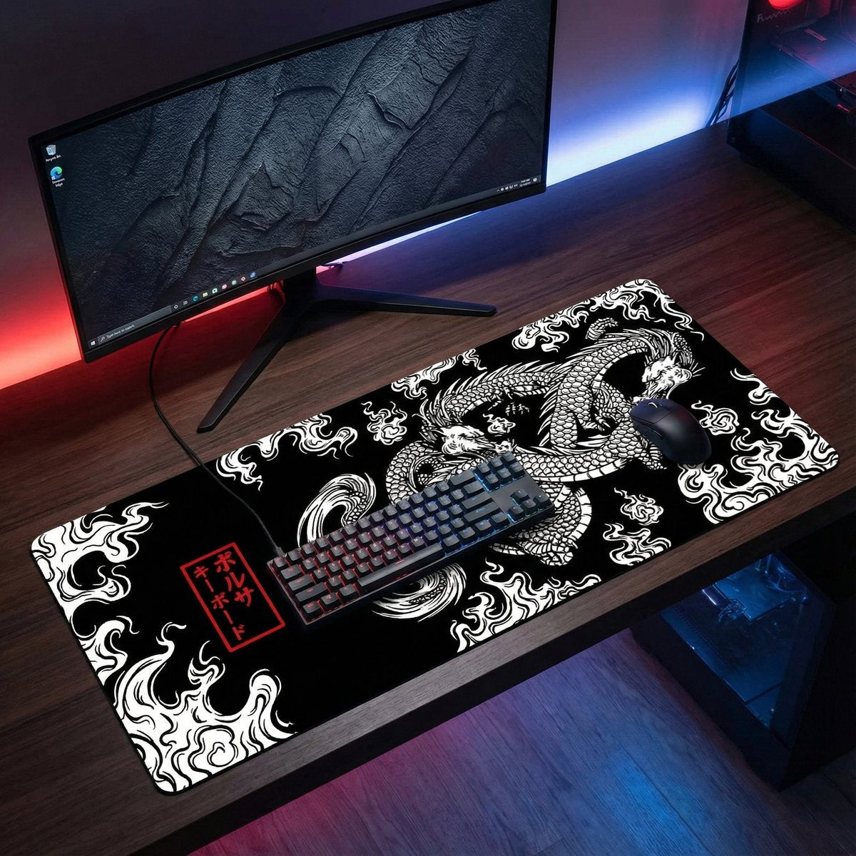Japans draakkunstwerk in zwart-wit in inktstijl